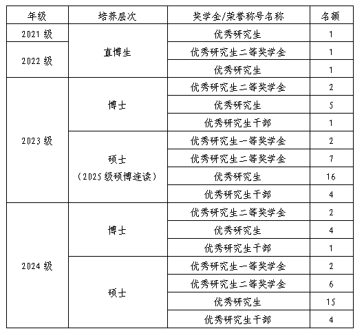 二、奖学金及荣誉称号名额